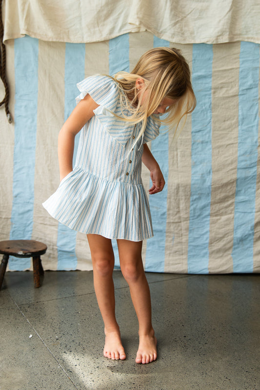 SEASIDE CHERRY STRIPE DRESS - SEASIDE ALMOND MILK