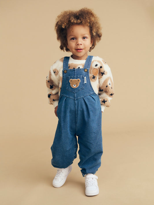 HUXBEAR KNIT DENIM OVERALLS - DENIM BLUE
