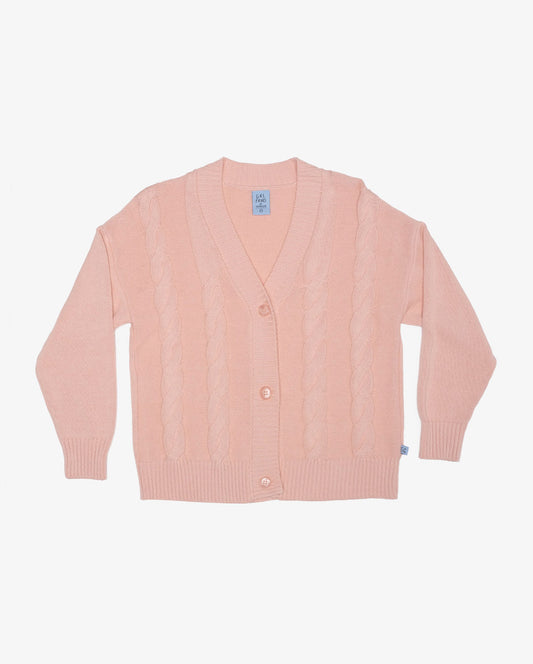 ORGANIC COTTON CABLE CARDIGAN -BABY PINK