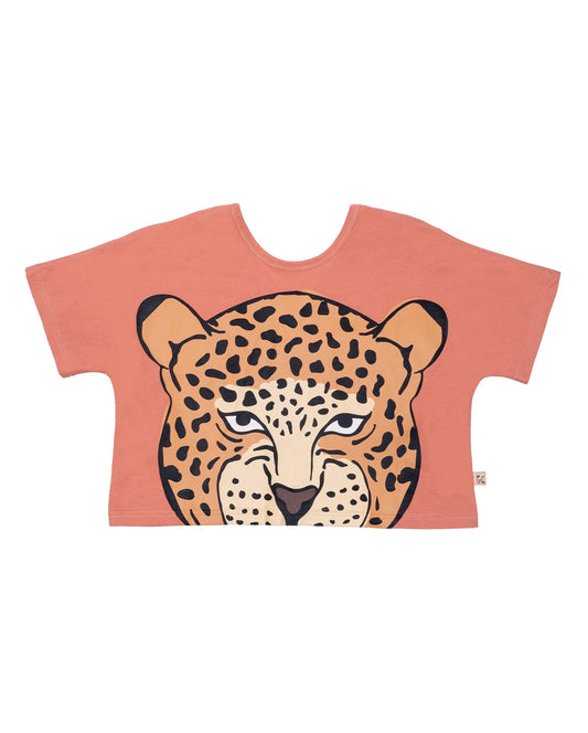 LOVE A LEOPARD V DETAIL CROP TEE - ORANGE
