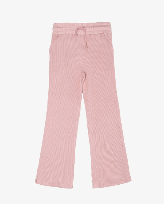 RIB COTTON WIDE LEG PANTS - ROSE PINK