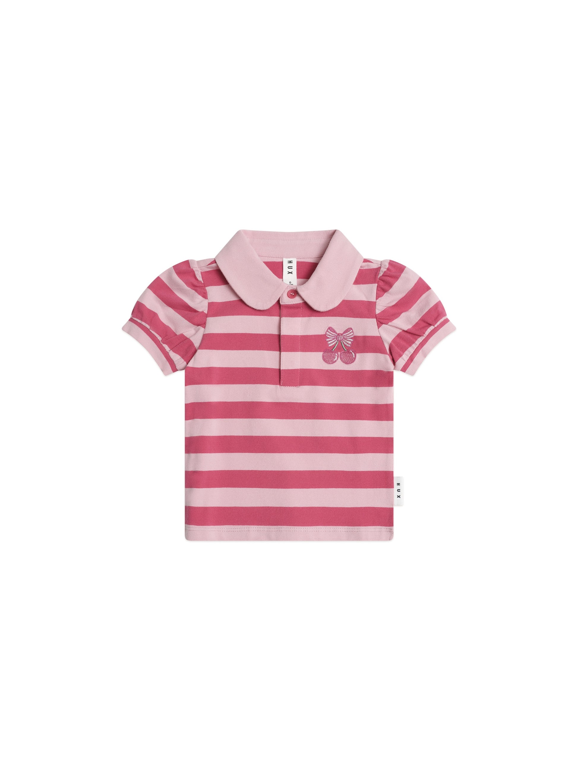 The puffy sleeve polo t-shirt you won’t know how you lived without. Made from buttery soft organic cotton, it features a sparkly cherry pie chest embroidery, puff sleeves and peter pan collar.