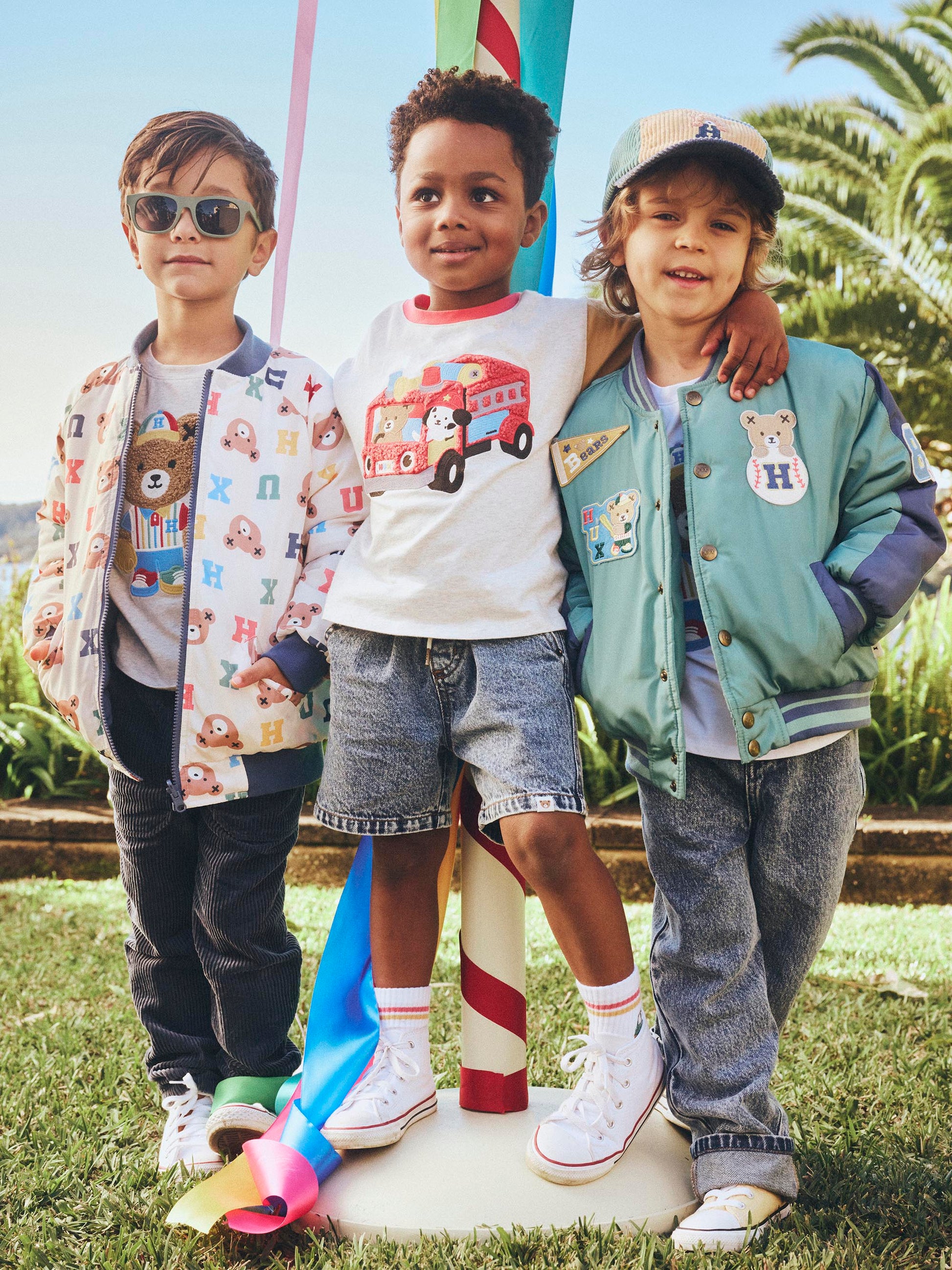 A long-sleeved round neck top in off white marle and block colours. Made from cloud-like organic cotton, it features a tummy-sized fire truck embroidery in the softest furry fabric. Bound to become their new everyday favourite, baby sizes include stainless steel shoulder snaps for even easier dressing.