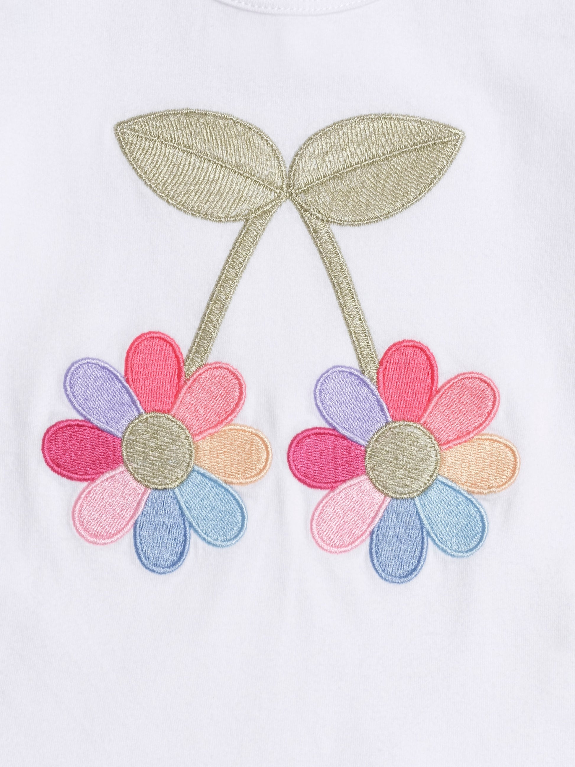 The puffy sleeve t-shirt you won’t know how you lived without. Made from organic cotton, it features a super cute flower power embroidery and puff sleeves.