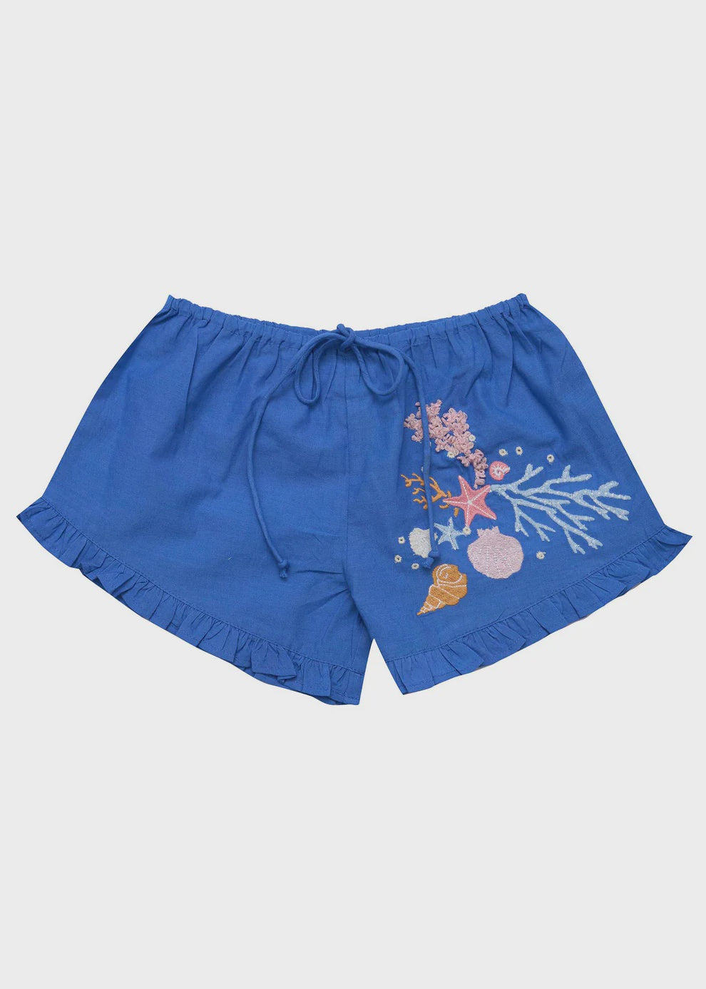 Gia shorts are your go-to easy-wear option, with a comfy stretchy waistband and a sweet ruffle hem. Playful ties and pretty embroidery add a fun, unique touch. These are sure to be on high rotation this summer.