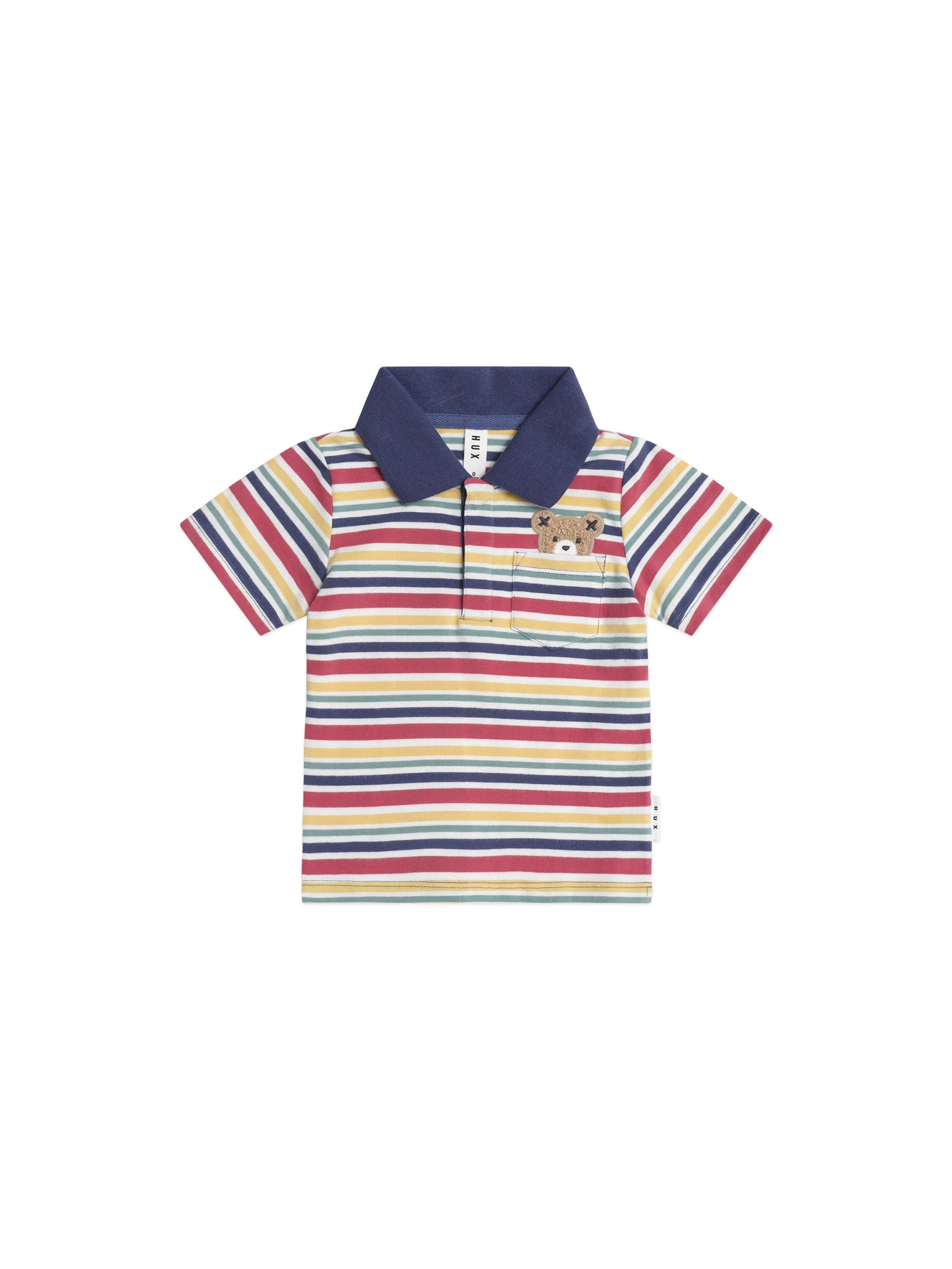 This short-sleeved polo in vintage stripes features a sporty, rugby-style collar and three buttons at the neck. Made from cloud-like organic cotton, it has a peeping Huxbear pocket detail and can be dressed up or down, depending on the day.