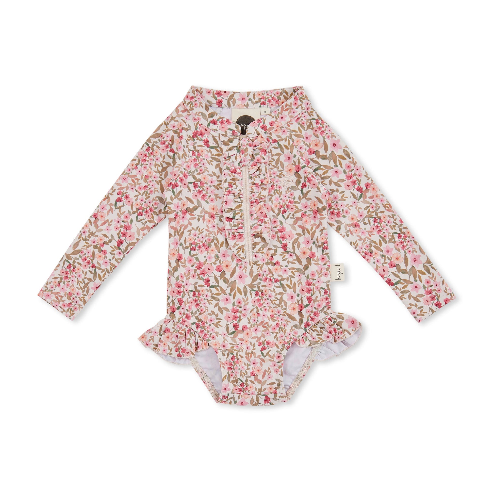Dive into style with our Spring Blossom Rashie Swimsuit! This colorful one-piece is perfect for a day at the beach or pool. With a rash guard top, it offers both protection and fashion. Stay cool, comfortable, and on-trend with our Spring Blossom Rashie Swimsuit.