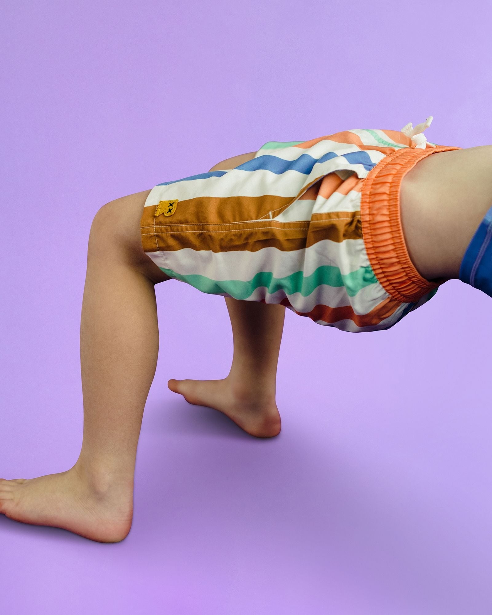 Bright, bold and perfect for summer adventures. These Rock Your Baby swim shorts feature a stripe print in orange, blue, green and white. Designed with an elastic waistband and functional drawstring for a secure, comfy fit.